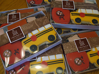 A regular client ordered 20 cookie boxes containing an 'End of School' theme and three bags of small school bus cookies. With all of the pencils, big, red apples and various sized school busses, my little shop was full!